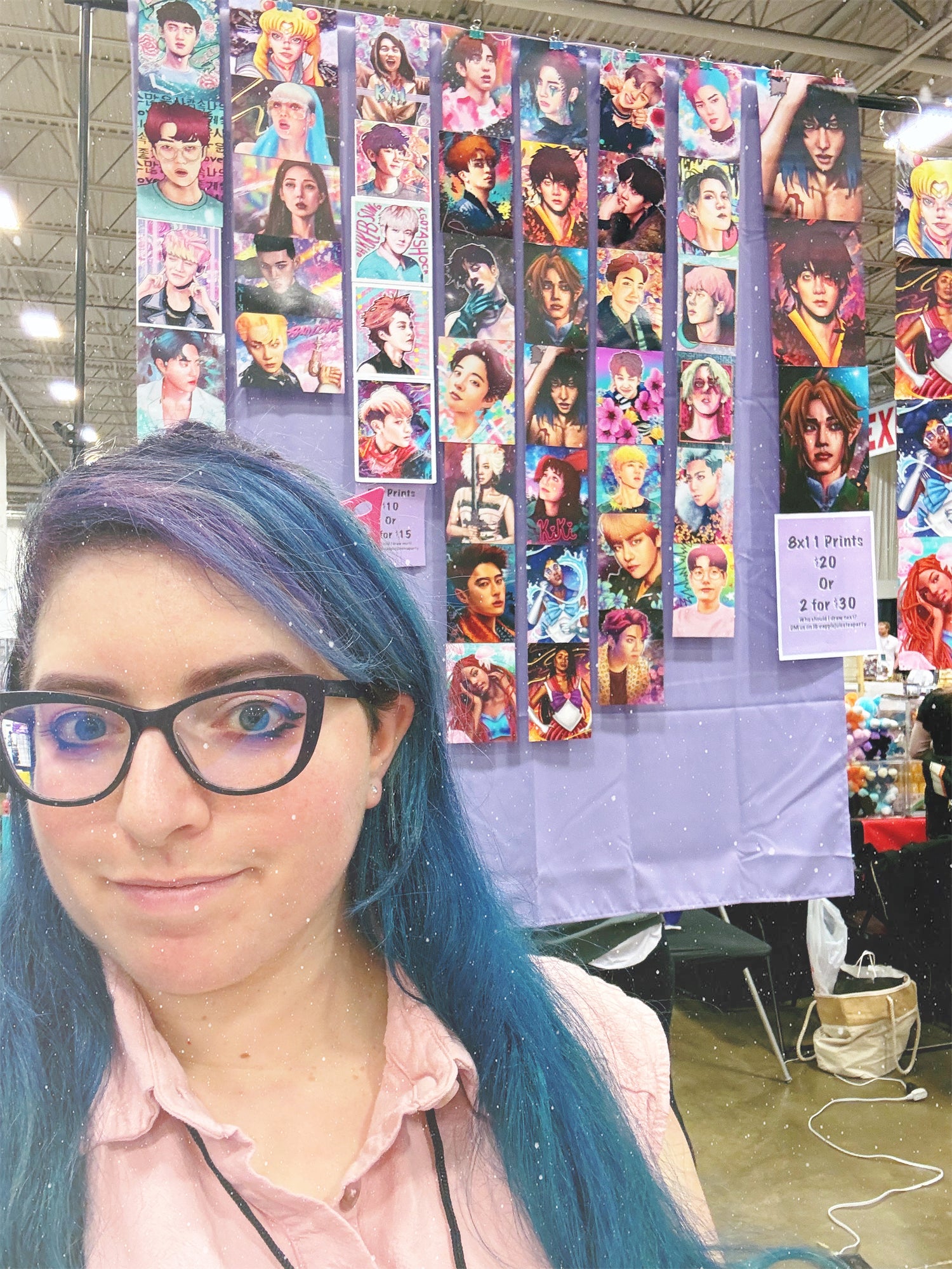 Aesthetically eclectic, Dorie sculpts creepy crystalline ceramic decor, repurposes vintage teacups into hand-poured soy candles, stitches masks and other fiber delights, and creates original Kpop/Anime fanart.
