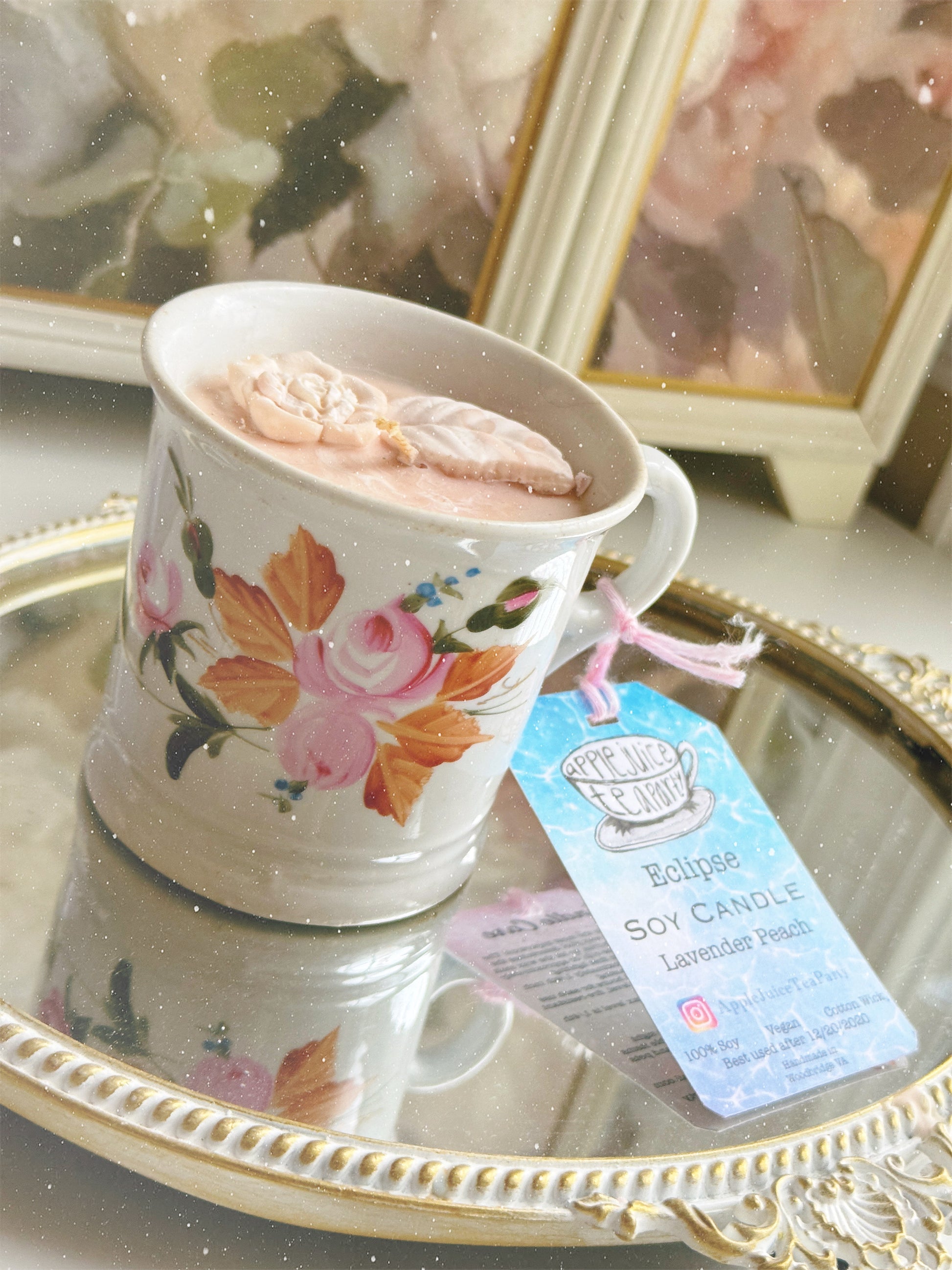 100% soy wax, cotton braided candlewick, vintage teacup, fragrance.