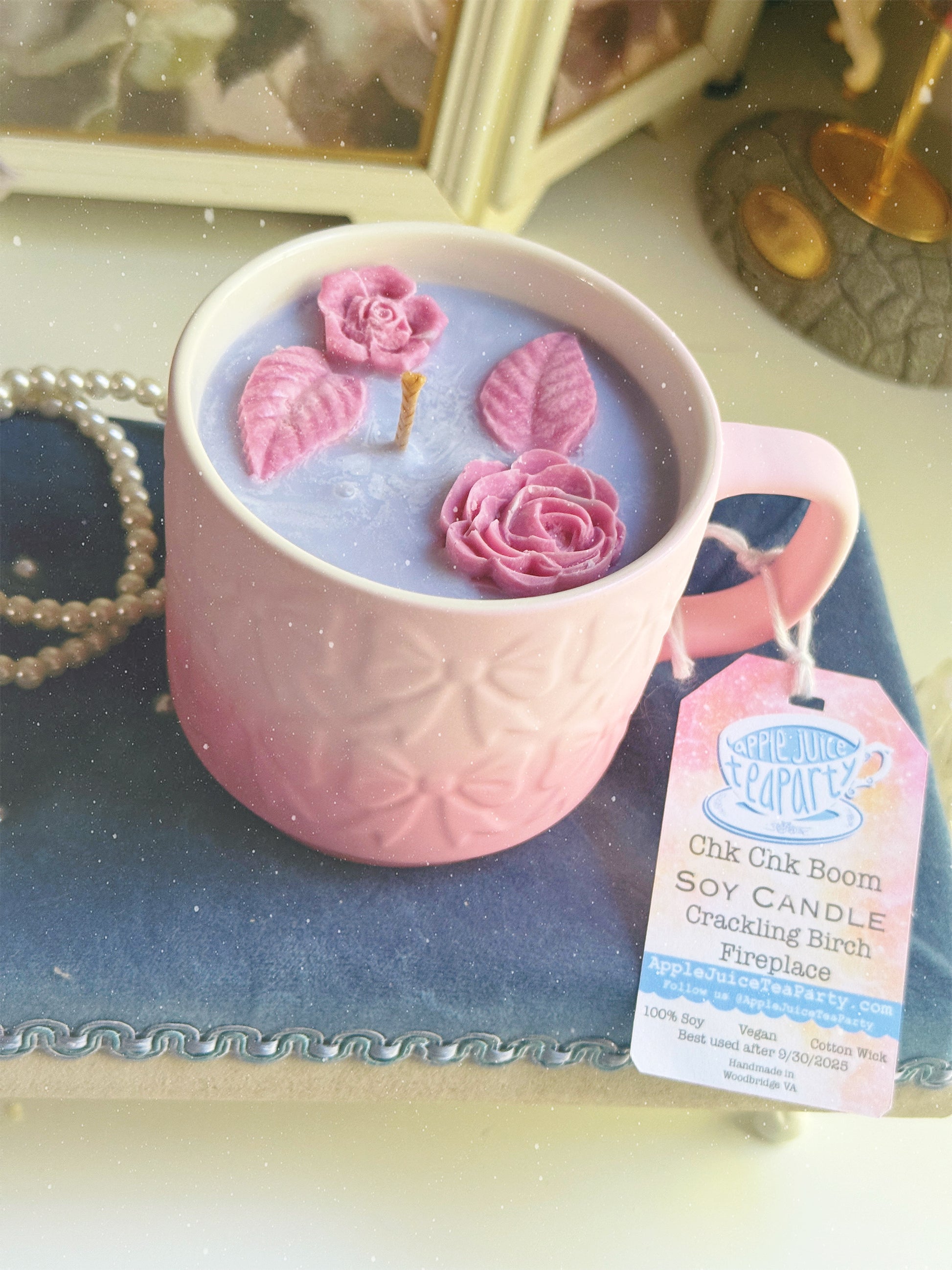 Done with your candle? Place the cup in a tub of hot water (NOT boiling, don’t hurt yourself!) for a few hours, the excess wax will melt out and float to the top of the water. Wash your teacup and it will be usable again!